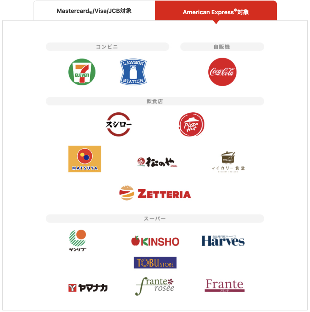 VISA/Mastercardに比べ、アメックスブランドは高還元の対象店舗が少ないです。自分の生活圏の店が対象か、必ずチェックしてください。