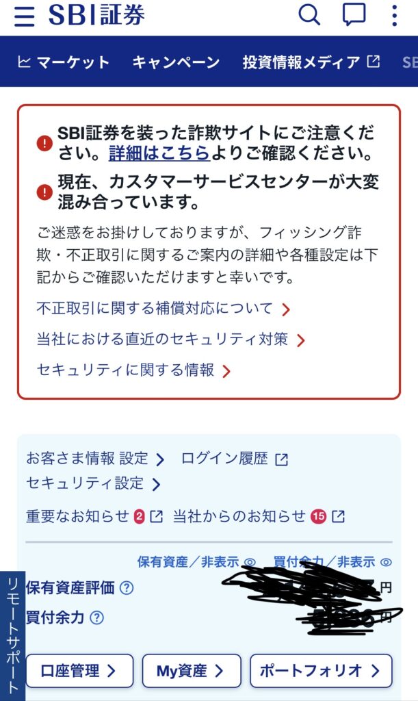 まずは、SBI証券のマイページにログインします。